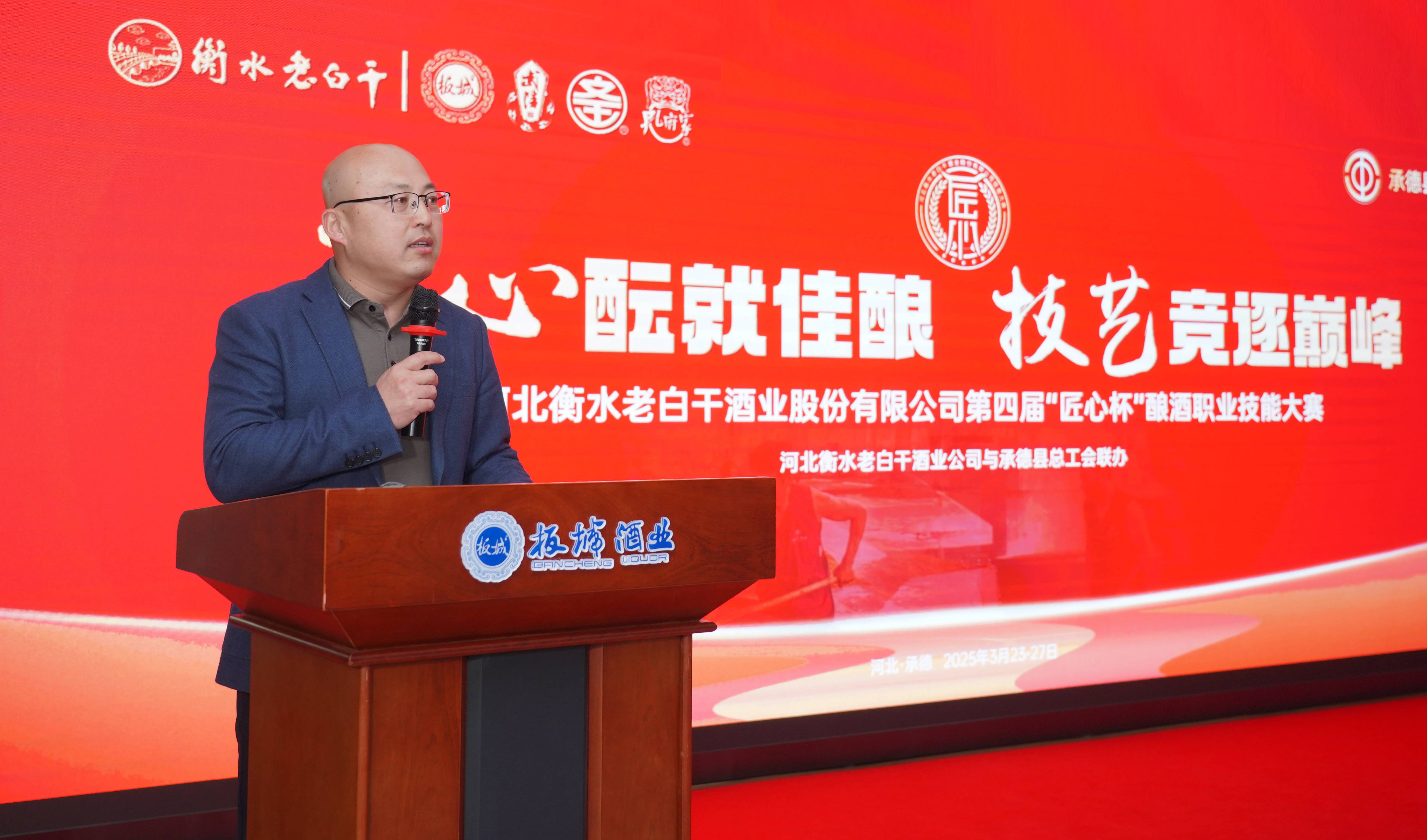 承德縣總工會黨組書記、常務(wù)副主席溫明忠在活動中致辭,他講到:“此次‘匠心杯’釀酒職業(yè)技能大賽,是老白干酒業(yè)集團(tuán)為旗下五家酒業(yè)公司的‘技能大師’們搭建的切磋技藝、展示風(fēng)采、傳承精神的廣闊舞臺。每一位參賽選手都是各自企業(yè)的佼佼者,他們帶來的不僅是精湛的釀酒技藝,更是對釀酒事業(yè)的無限熱愛與執(zhí)著追求。通過這場比賽,大家相互學(xué)習(xí)、相互交流,在競爭中進(jìn)步,在切磋中成長,必將推動酒行業(yè)整體水平的大幅提升。希望以此次大賽為新的起點,進(jìn)一步弘揚工匠精神,加強技術(shù)創(chuàng)新與研發(fā),為消費者釀造出更高品質(zhì)的美酒,為中國酒業(yè)的發(fā)展注入新的活力。”