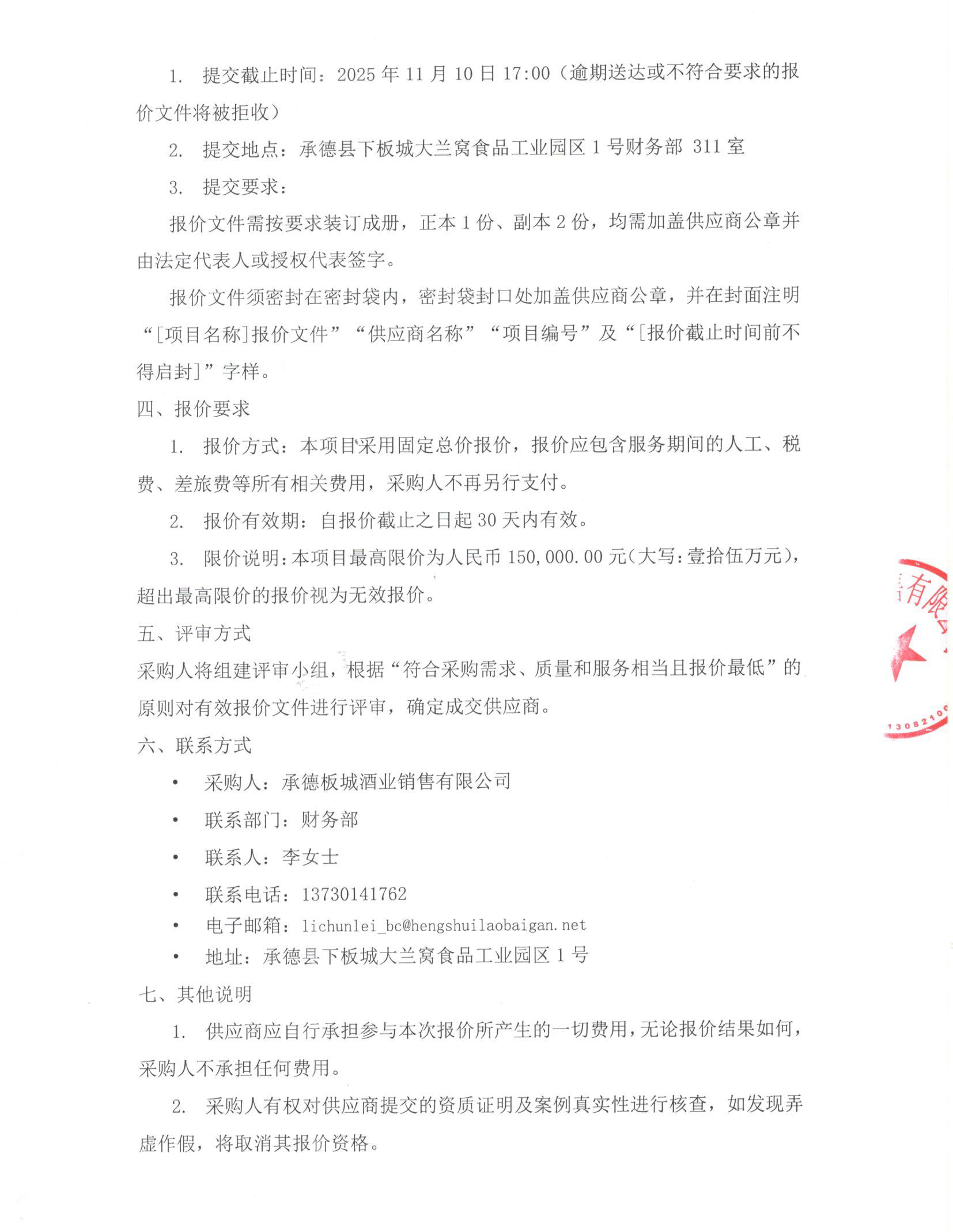 承德板城酒業(yè)銷售有限公司一般稅務(wù)咨詢服務(wù)項目密封報價公告